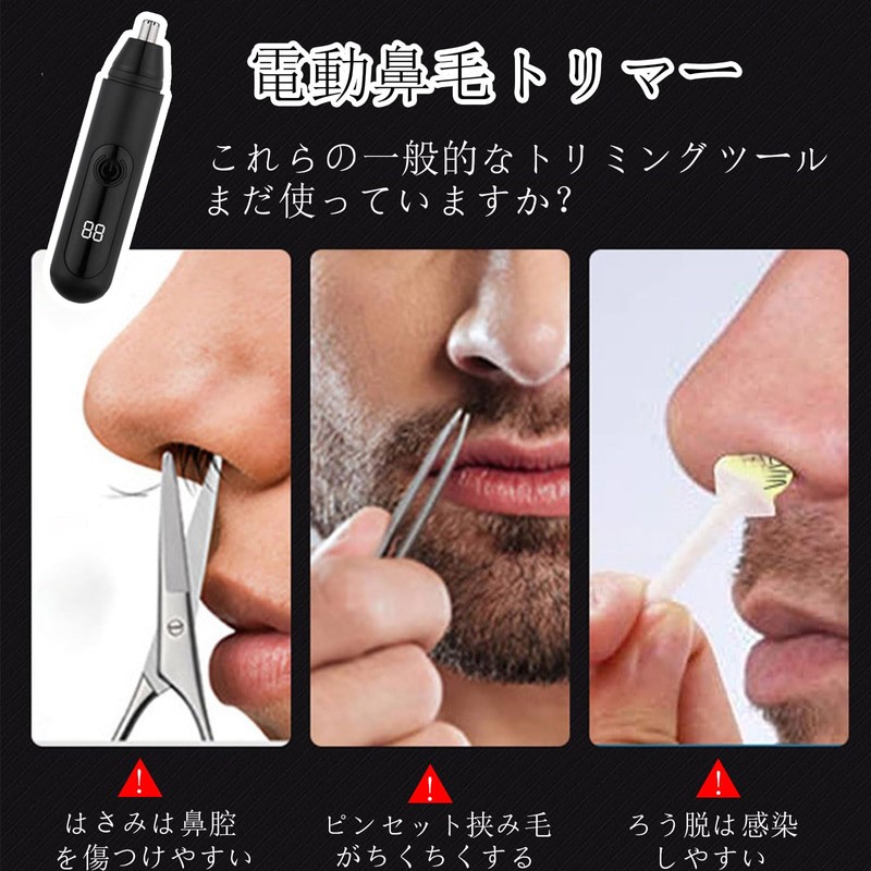 - 【デジタル電源表示】 この鼻毛トリマーは電池残量がデジタル表示されるので、使用時に電池切れの心配がありません。 残量が一目でわかるので、いつでも安心して使用でき、突然の電池切れを防ぎます。USB-Type Cケーブルで簡単に充電できるため、外出先でも便利に使用することができます。