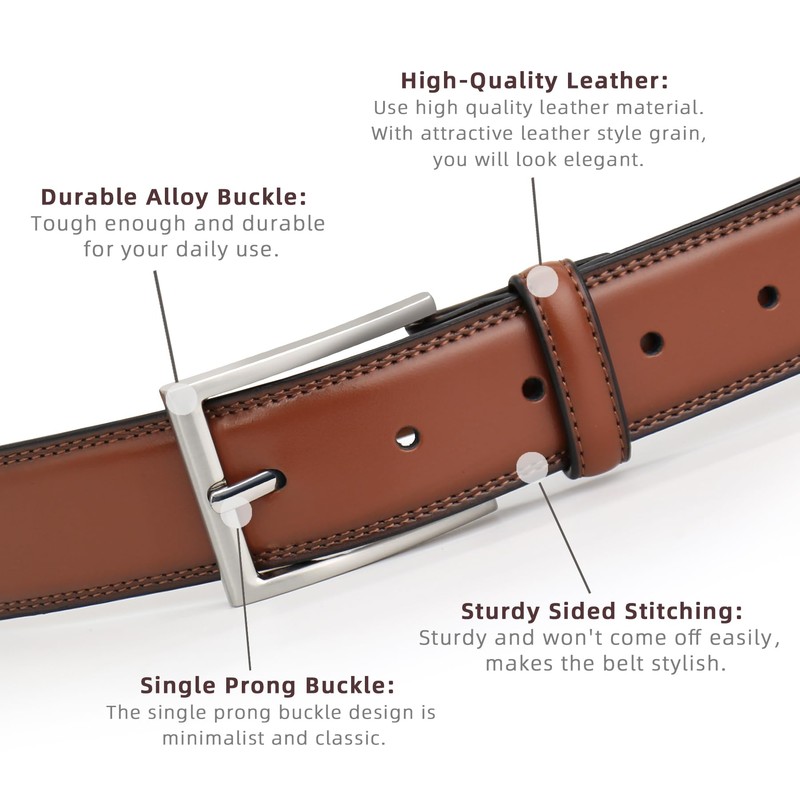 - HIGH QUALITY BELT: This mens belts are made from high-quality leather material.With attractive leather style grain, you will look elegant. And this belt is tough enough with the use of high-quality leather. The alloy buckle is more sturdy and not easy to rust. The smooth alloy surface makes the belt look more textured.
