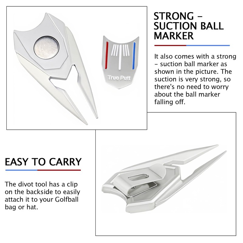 • Multi-Functional Performance:Functions as a pitch mark repair tool, putter groove cleaner, and alignment aid. Unique groove design removes dirt from clubheads—3 tools in 1 to save bag space.