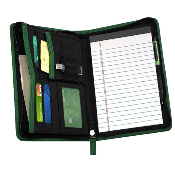 Lcjtop Junior Business Padfolio - A5 PU Leather Portfolio Binder & Zippered Binder Folder with 5 x 8 Writing Pad and Interior Storage Pocket Executive Business Organizer for Women,Green