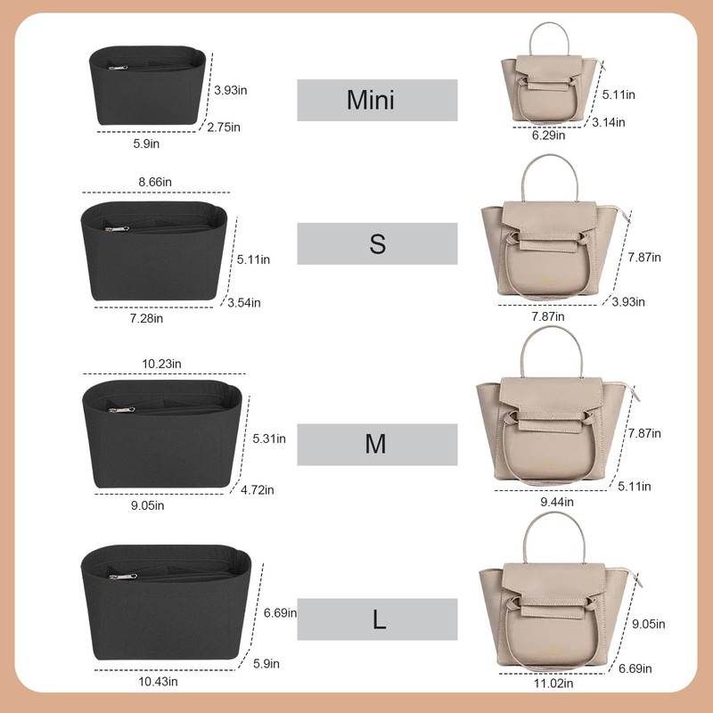 Lckaey Celine Handbag Organizer - Nano, Mini, Small, Medium, Large - Black Felt Insert Bag Organizer
