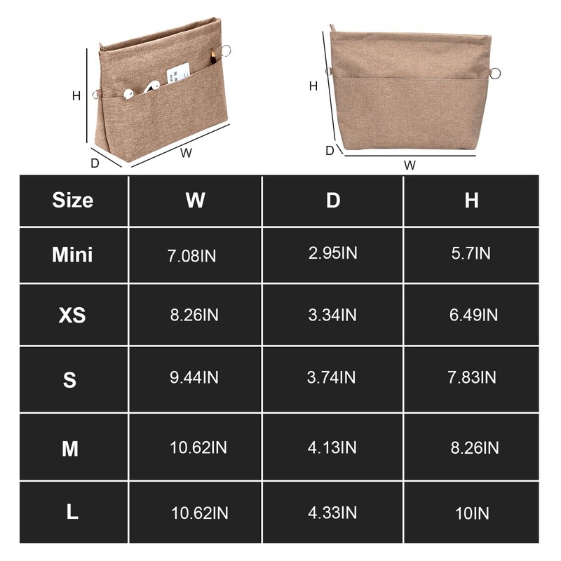 - Purse Organizer Tote Inserts Made of high-grade nylon and latest fabric lining. Lightweight, durable, soft touch and water-reistant surface. first measure the length and width of the handbag, and then compare the size chart to buy.