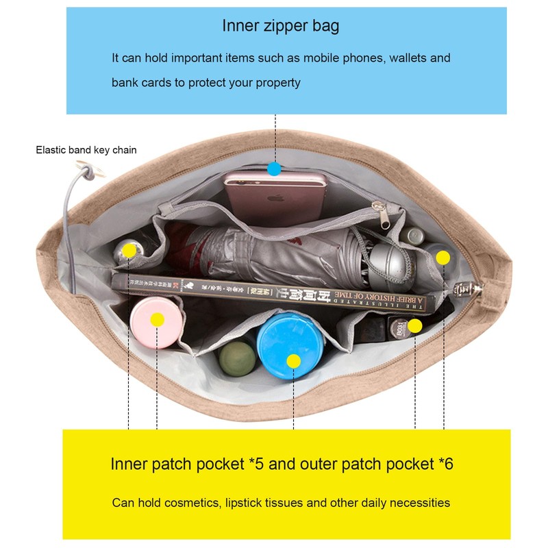 - Insert Organizers Bag, made of smooth, soft, flexible and lightweight nylon fabric. Casual fashion, smooth and beautiful, more perfect bag shape, easy to clean, very durable, suitable for daily use.