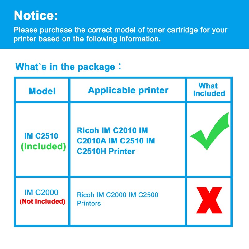- Compatible Printers: Replacement for Ricoh IM C2010 IM C2010A IM C2510 IM C2510H Printer