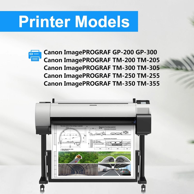 - Compatible Printers: Replacement for Canon imagePROGRAF GP-200, GP-300,TM-200, TM-200 MFP L24ei, TM-205, TM-205 MFP L24ei, TM-300, TM-300 MFP L36ei, TM-300 MFP T36, TM-300 MFP T36 AiO, TM-305, TM-305 MFP L36ei, TM-305 MFP T36, TM-305 MFP T36 AiO series Large format printers. for Canon imagePROGRAF TM-250 TM-255 TM-350 TM-355 printers.