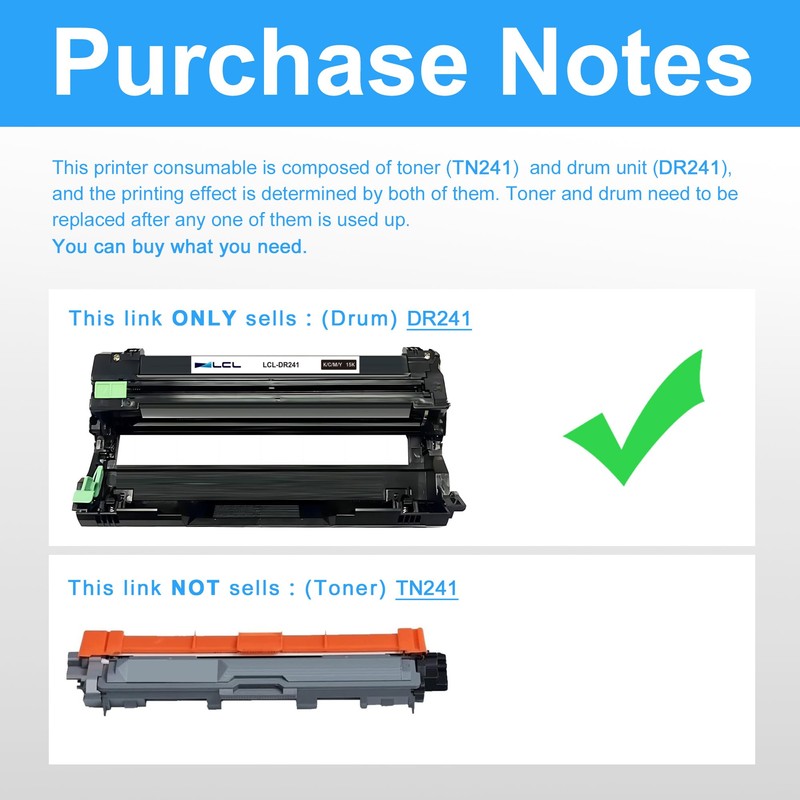 - Durable OPC: LCL DR-241 drum unit uses durable OPC that has a very high durability, withstands higher pressure, has excellent ageing resistance and can withstand a higher operating temperature to ensure the life of the drum holder.