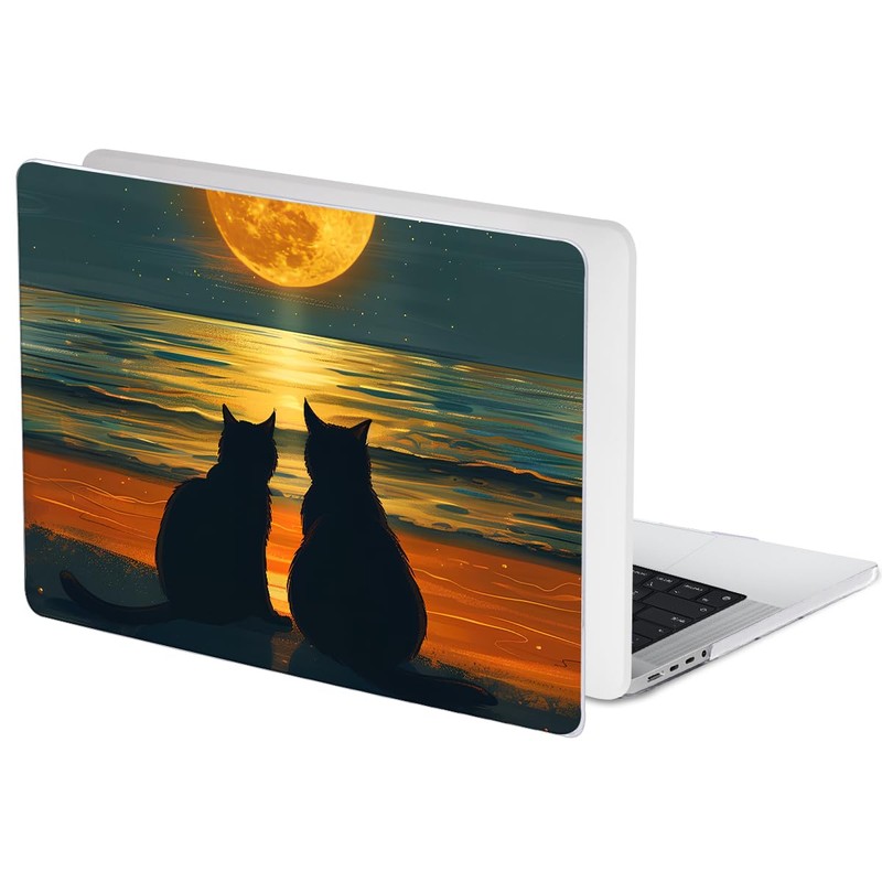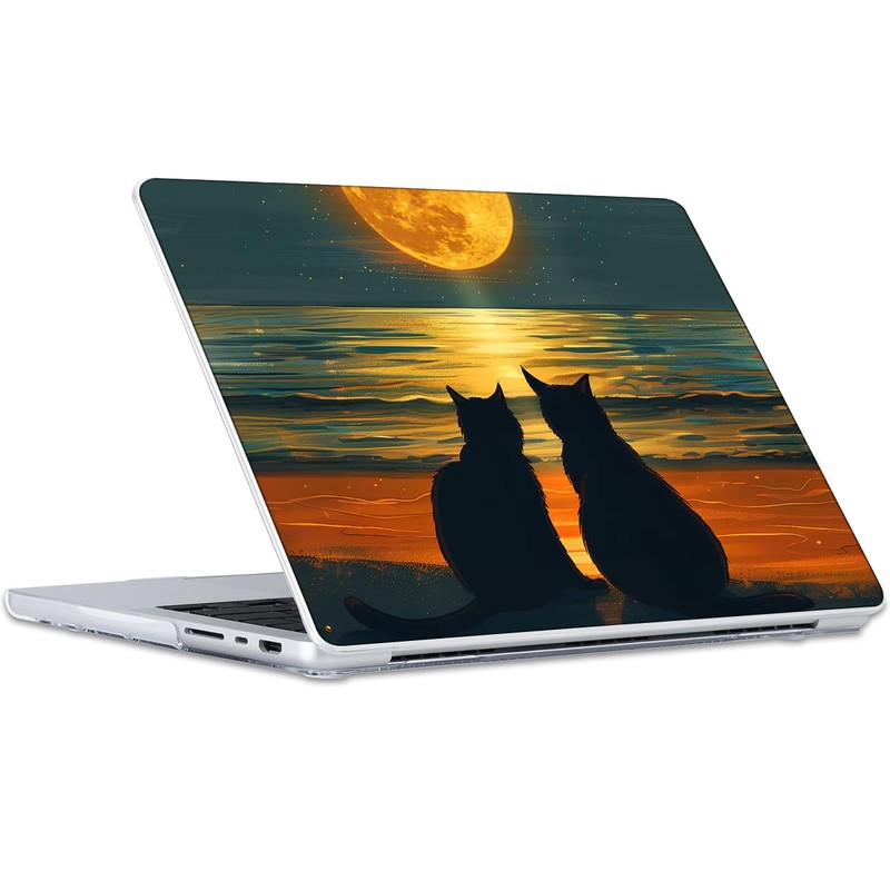 LCMOCICO Compatible with M4 MacBook Pro 14 inch Case 2024 2023 2022 2021 Release A3112 A3185 A3401 A2918 A2992 A2779 A2442 M4 M3 M2 M1 Pro Max Chip, Pattern Plastic Hard Shell Cover, Cat Watching Moon