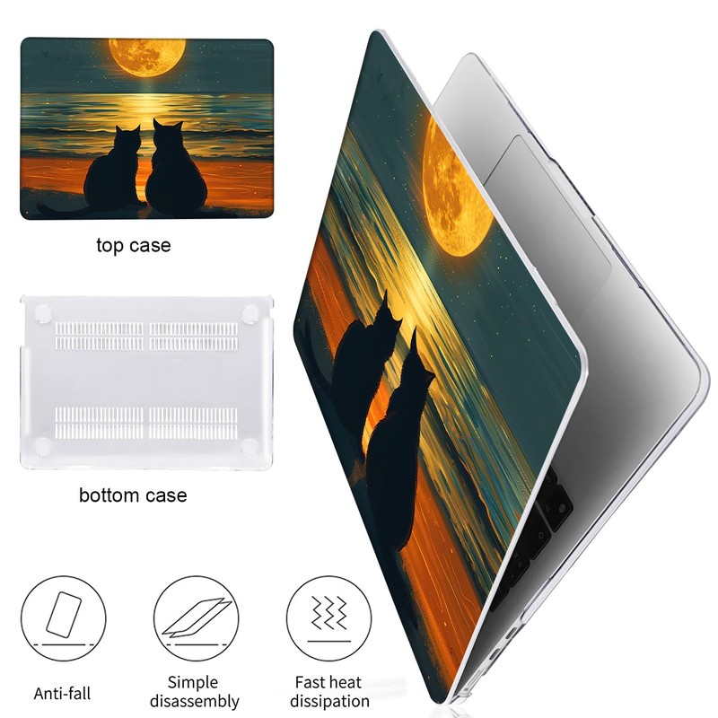 LCMOCICO Compatible with MacBook Air 13.6 inch Case 2024 2023 2022 Release M3 A3113 M2 A2681 with Touch ID, Printed Pattern Plastic Hard Shell Cover for MacBook Air 13.6 M3 Case, Cat Watching Moon