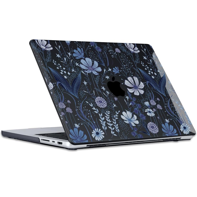 LCMOCICO for 2023 M3 A2918 A2992 MacBook Pro 14 inch Case M2 A2779 / M1 A2442 (2022 2021), Pattern Plastic Hard Shell Case Cover for Mac Pro 14 M3 M2 M1 Pro/Max Chip with Touch ID, Wild Flowers Black