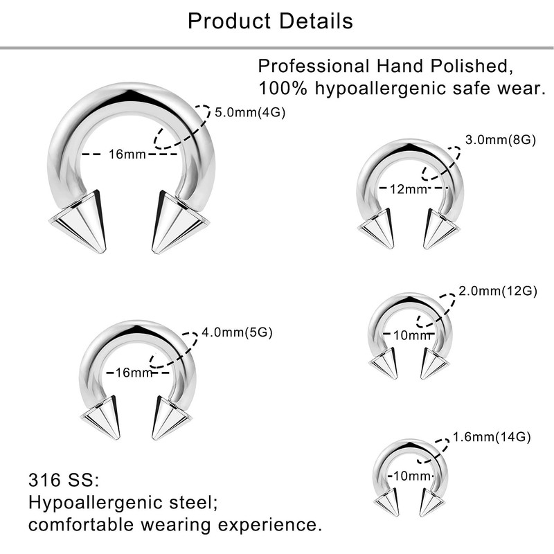 - SIZE REFERENCE-- Crescent Stretcher Taper Kit Gauge Size: 14G=1.6mm, 12G=2mm, 8G=3mm, 6G=4mm, 4G=5mm. Its Are Super Good for You Since You Have Been Stretching Your Septum. Stainless Steel Horseshoe Rings are Good Weight for Stretching. Acrylic Buffalo Tapers with Black O-Rings are Good Lightweight for Wearing.