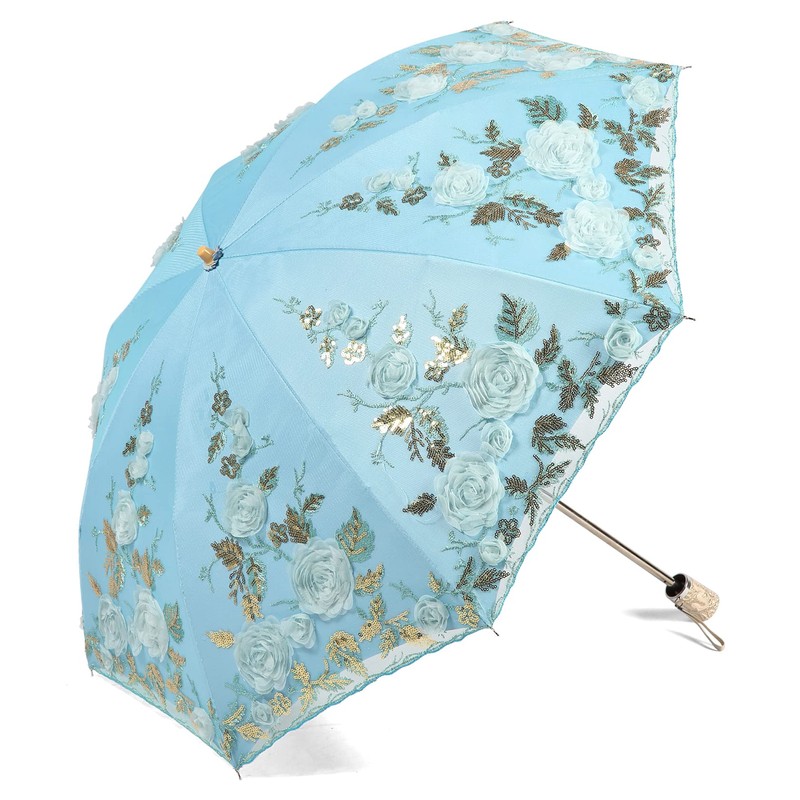 LCY Womens Anti-UV Lace Embroidery Folding Sun Parasol Rain Umbrella Wedding Umbrella-Blue