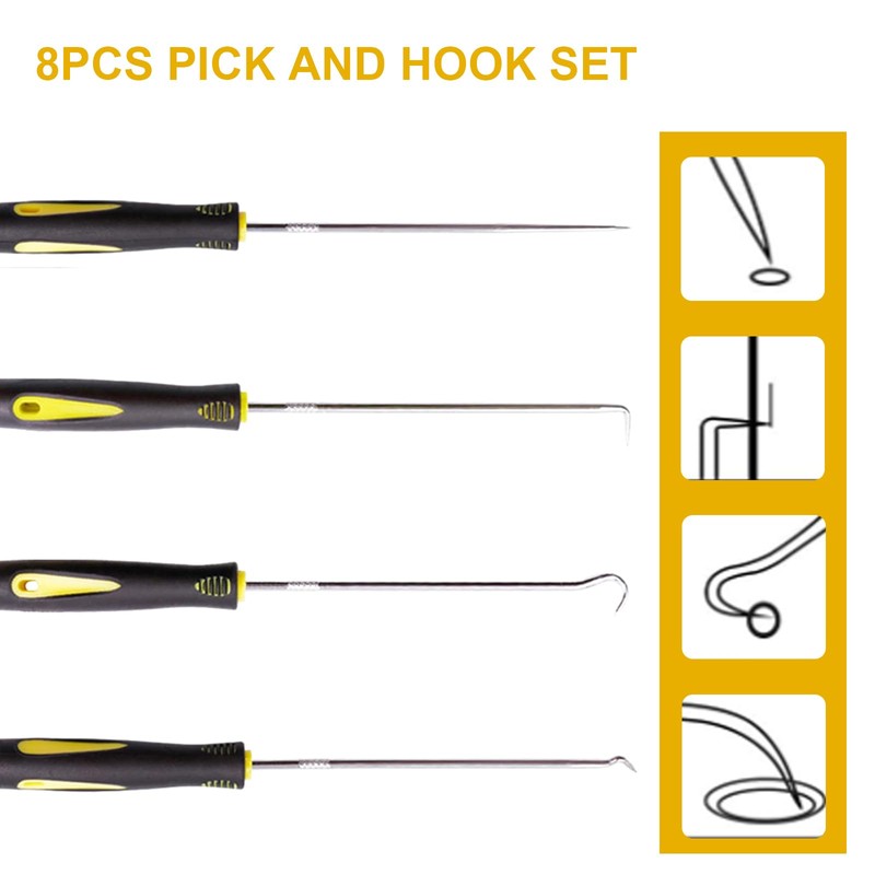 lcyen 8 Piece Hook and Pick Set, Essential Tool Hook Removal Kit for Mechanics, Long and Short Reach, Pick Set for Automotive Work and O-Rings, Gaskets and More