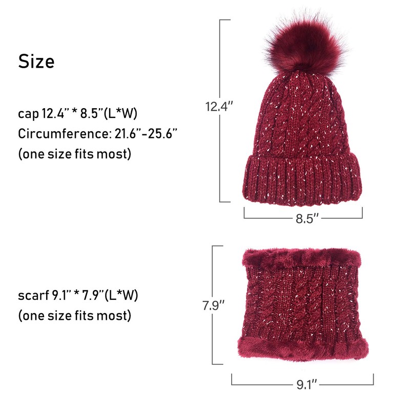 LCZTN Womens Pom Beanie Hat Scarf Set Girls Cute Winter Ski Hat Slouchy Knit ...