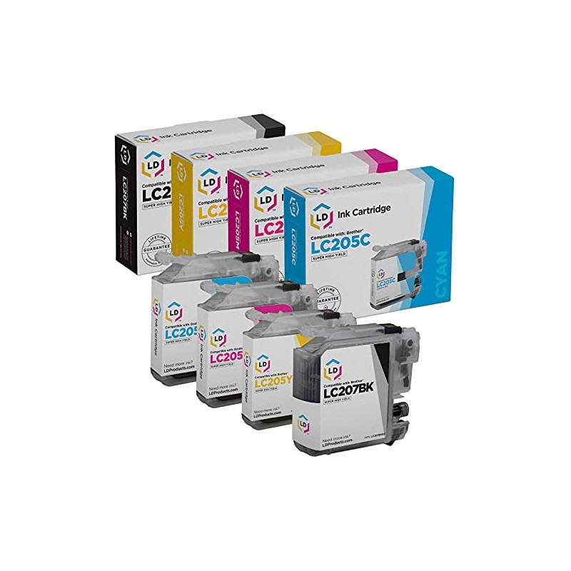 LD Compatible Ink Cartridge Replacement for Brother LC207 & LC205 Super High Yield (Black, Cyan, Magenta, Yellow, 4-Pack)