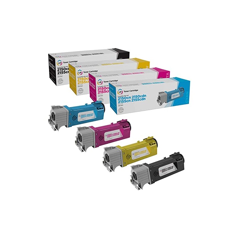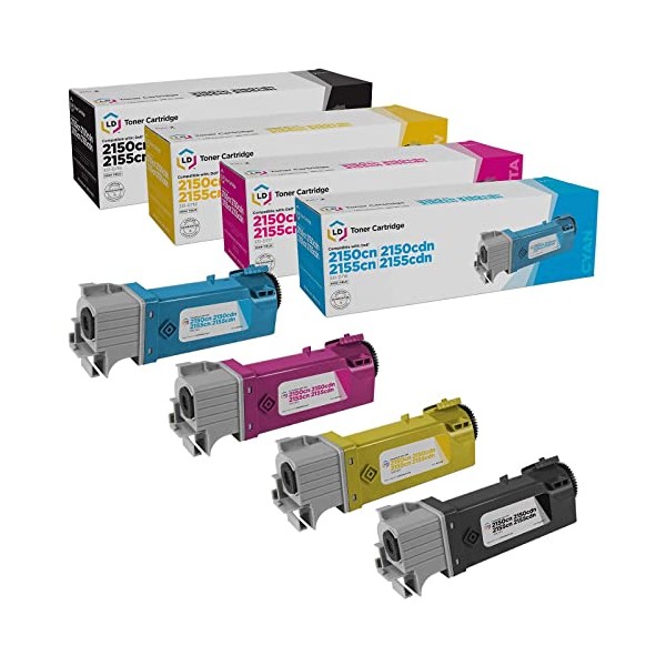 LD Compatible Toner Cartridge Replacements for Dell Color Laser 2150 & Dell Multi-Function 2155 High Yield (Black, Cyan, Magenta, Yellow, 4-Pack)
