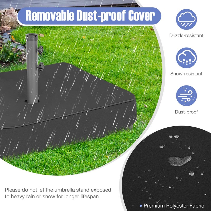 - Multifunctional Design: With a square and stylish surface as the characteristic, this black umbrella base can be matched with any surrounding decorations to add charm to your outdoor space. The reliable umbrella stand can be used in many occasions, suitable for patios, gardens, courtyards, porches, swimming pools, etc.