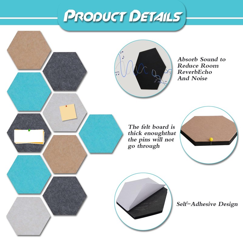 - Size and Inclusion: Each hexagon measures 20x17 cm. Every package includes a box of thumbtacks to instantly start your creative journey.