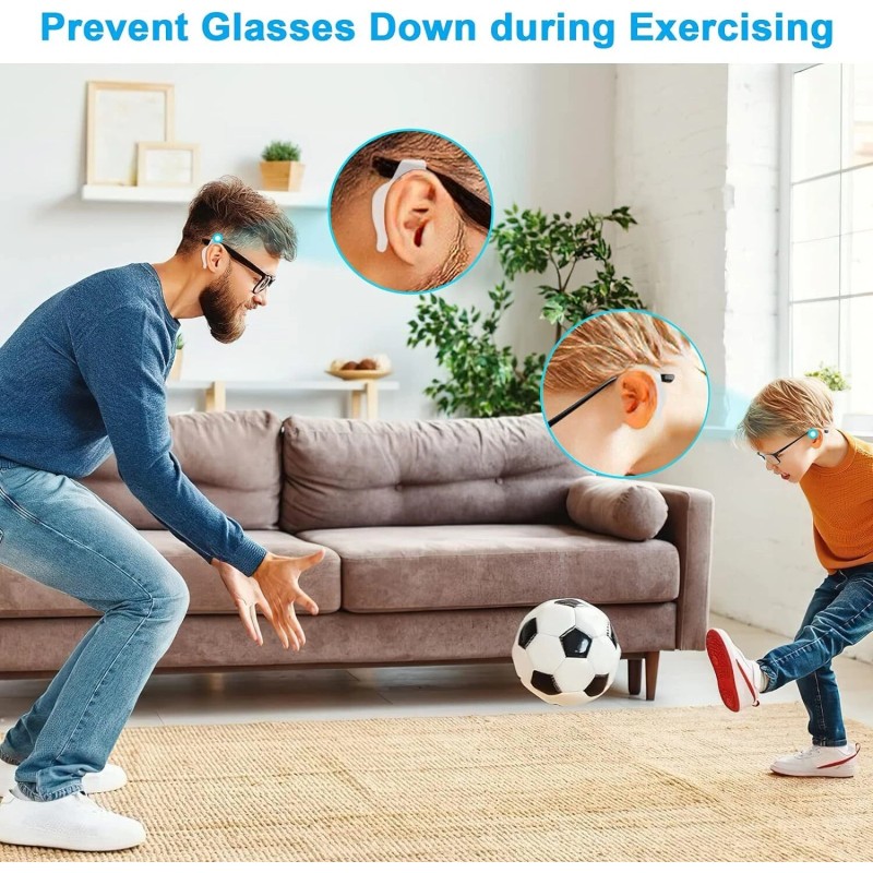 - Wide Application- The eyeglass holder is applicable to temples with width of 0.2inch - 0.6inch, so it fits almost kids, men, women any pair of eyeglasses, reading glasses, sunglasses, whether the temples are thin or thick. You can use the ear grip during working and exercising including cycling, hiking, running, playing football, playing basketball etc.