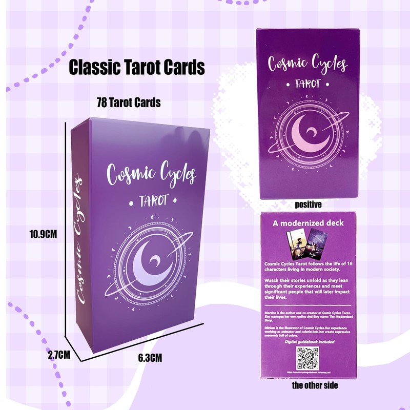 The Cosmic Cycle Tarot Cards is an engaging and comprehensive tarot deck for beginners and experienced readers alike. This classic tarot deck consists of 78 beautifully illustrated cards that showcase the fascinating world of tarot reading.