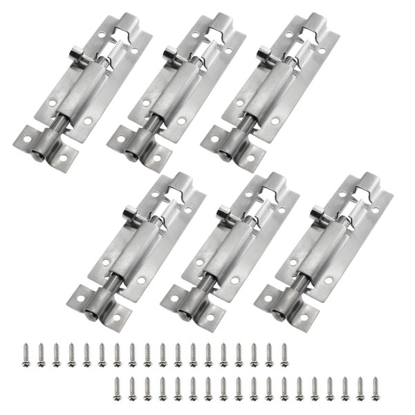 LDEXIN 6Pcs Door Security Slide Latch Lock, 3 inch/75mm Barrel Bolt with Soli...