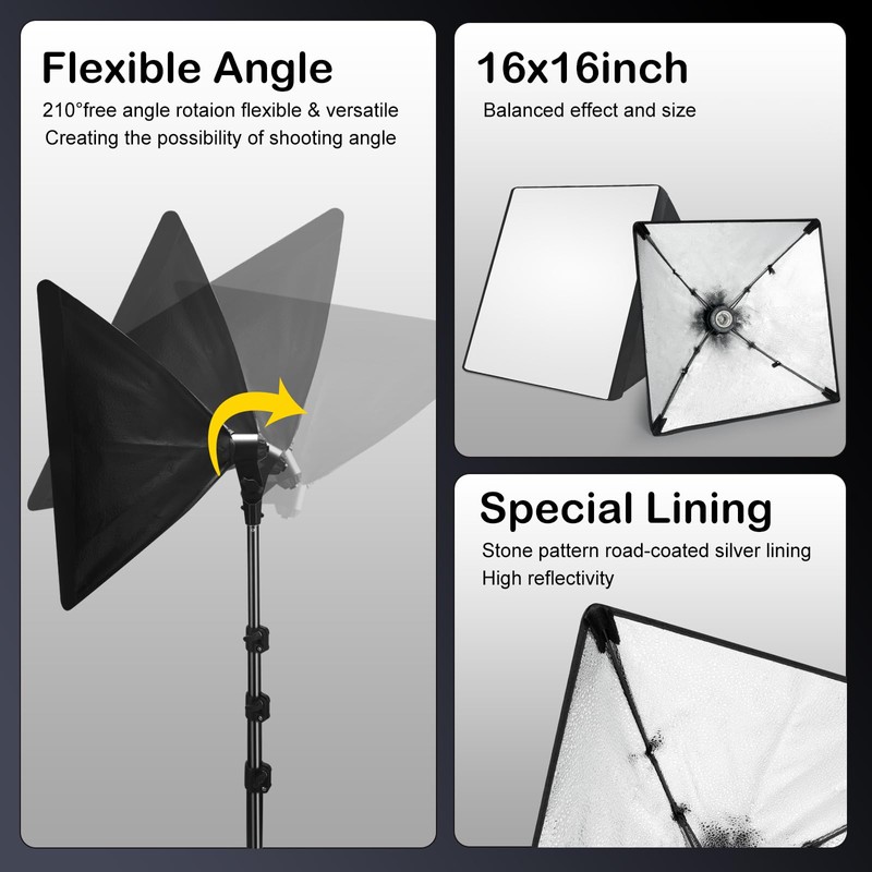 - Versatile Studio Setup: 16'' x 16'' softbox with 5500K / 95 CRI LED bulb for continuous lighting suitable for video recording and photography shooting.