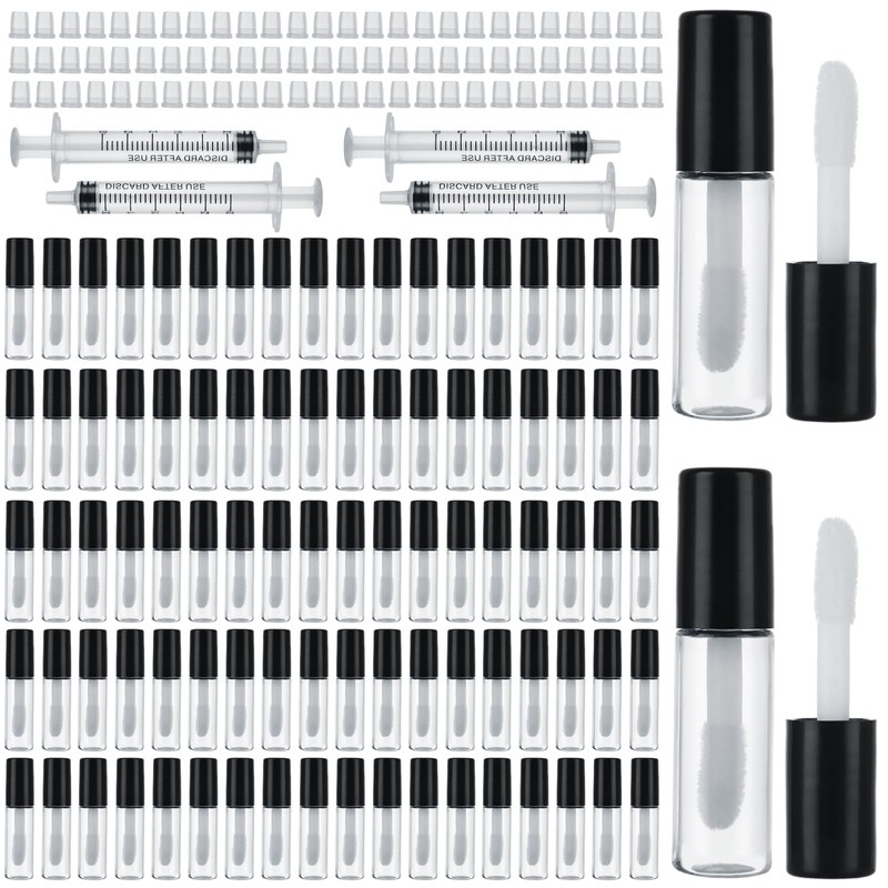 LDHHYH 120 Pack 10 ml Clear Mini Lip Gloss Tube, Empty Plastic Lip Gloss Containers, Refillable Lip Balm Gloss Containers Bottles for Travel DIY Makeup - Black