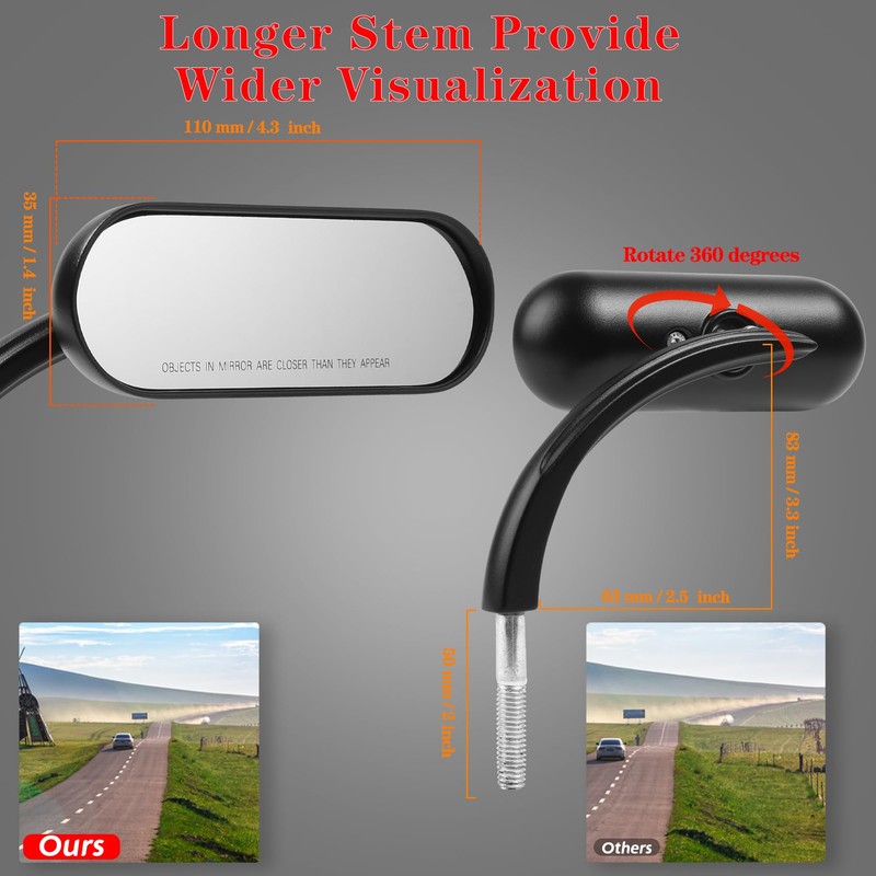 - 360 ° adjustable: 360 ° adjustable mirror provides better vision and visibility for riders, making riding safer. In addition, high-quality accessories make the mirror fixed firmly.