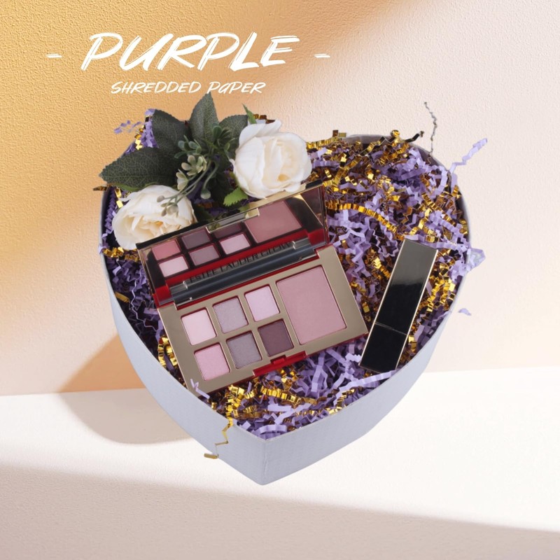 LDKGHE 4 oz Crinkle Cut Paper Shred Filler for Gift Wrapping Baskets Filling Box Birthdays Christmas Thanksgiving Easter Weddings Valentines Mother's Day Anniversaries (Lavender purple and Gold)