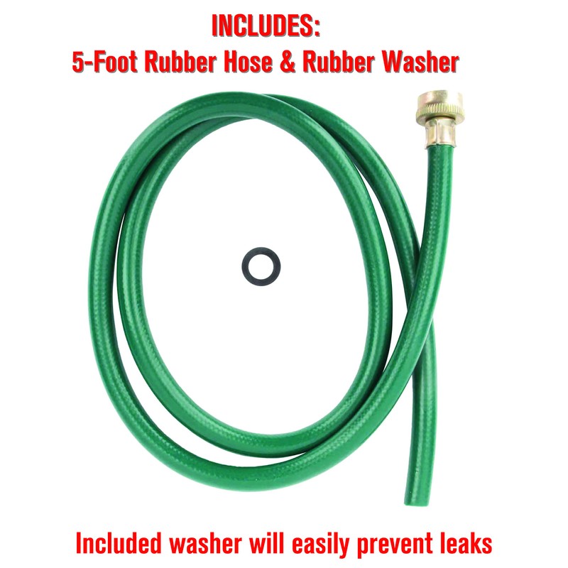 - DURABLE CONSTRUCTION: Included rubber washer and hose provide reliable, leak-free performance