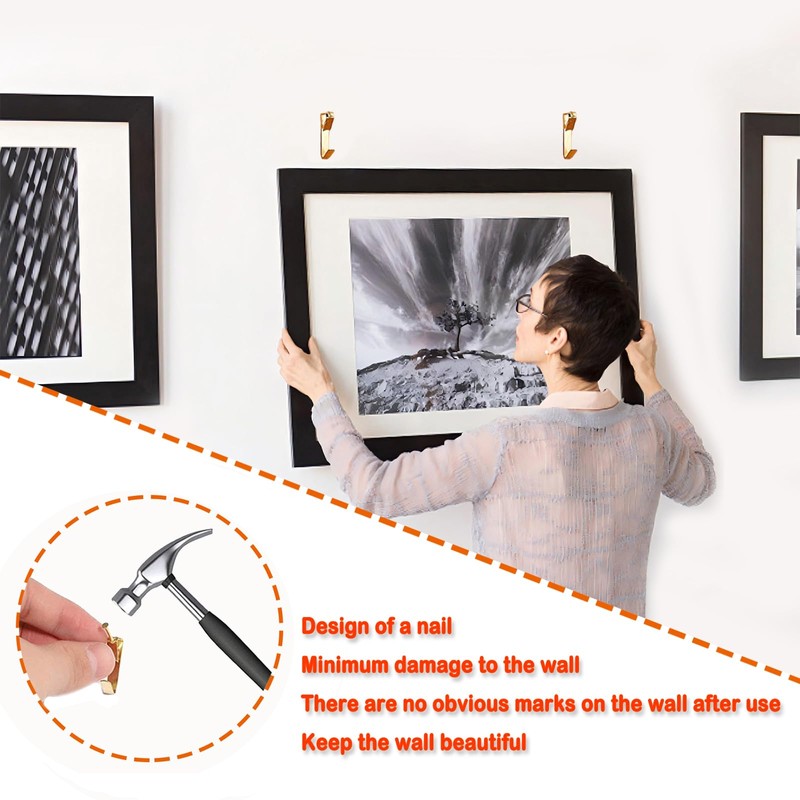 Ldzzuo Picture Hanging Kit 136 Pieces Picture Hangers 10lb, 20lb, 30lb, 50lb, 100lb, Picture Hooks with Nails for Hanging Pictures, Picture Frames,Clocks on Drywall and Wood Walls (Gold)