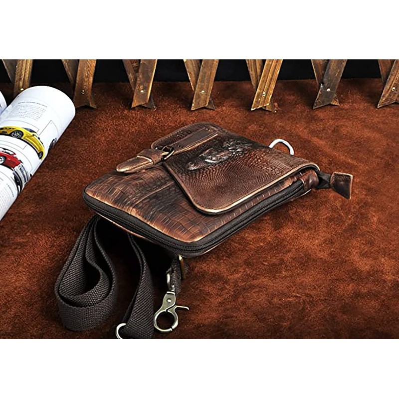 Le'aokuu Men's Crazy Horse Leather Bag Leisure University School Bag Travel Bag Shoulder Bag Messenger Bag 611, 611-1 Crocodile Dark Brown-Size, messenger