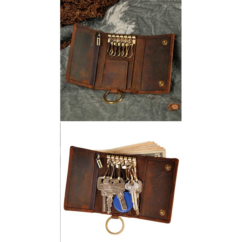 Le'aokuu Mens Genuine Leather Car Key Case Loop Hook Coin Case Cover Wallet S...