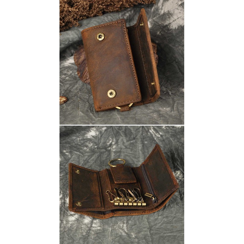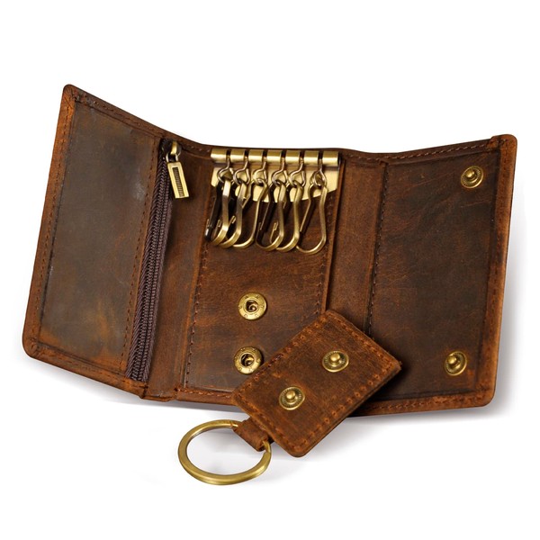 Le'aokuu Mens Genuine Leather Car Key Case Loop Hook Coin Case Cover Wallet Snap 1064(B Dark Brown)