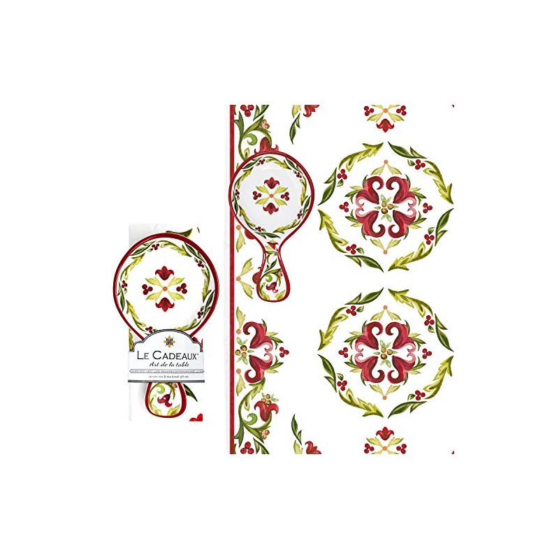 Le Cadeaux Vischio Holiday Collection Melamine Spoon Rest and Tea Towel Set