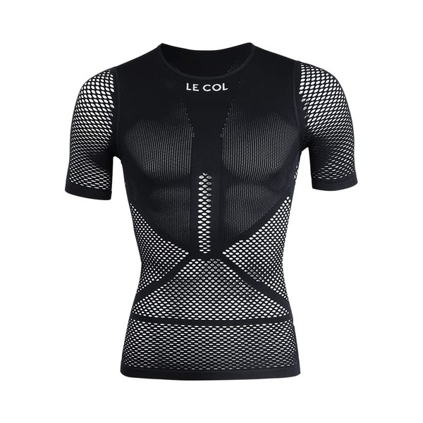 LE COL Unisex Pro Mesh Short Sleeve Base Layer | Breathable Cycling Undershirt | Light, Quick Dry, Snug Fit | Black, S/M