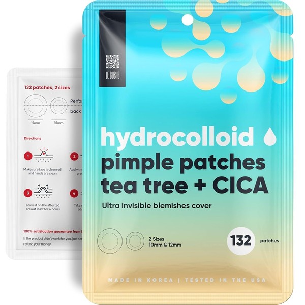 LE GUSHE Korean Hydrocolloid Pimple Patches (132 Dots) - Acne Spot Treatment with Tea Tree Oil - Invisible & Dermatologist-Tested Blemish Patches | Korean Skincare