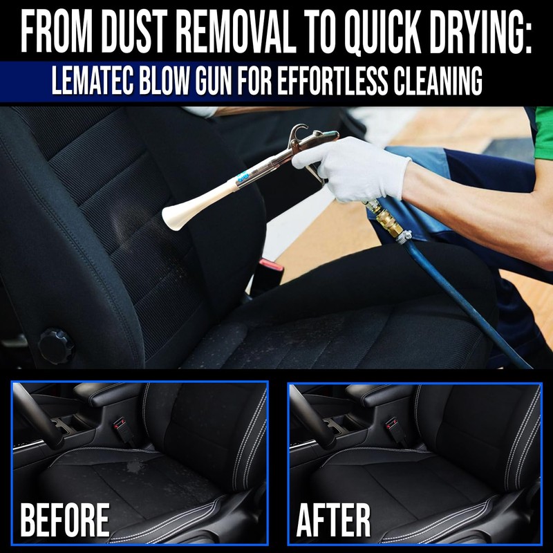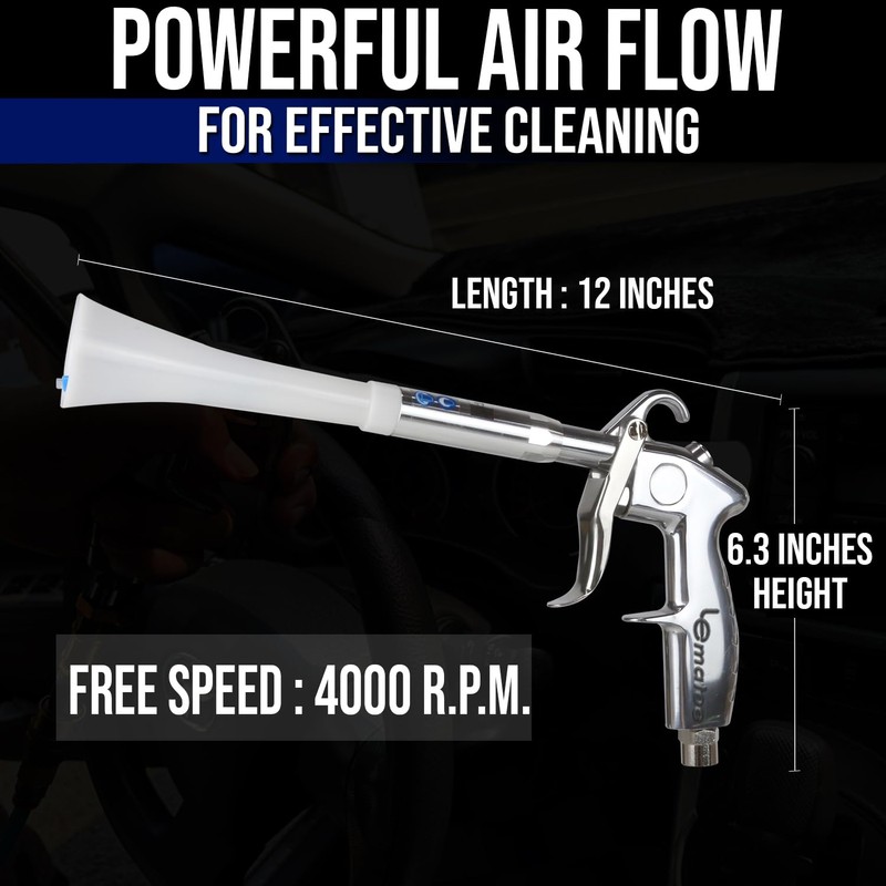 LE LEMATEC Air Blow Gun for Air Compressor - 4000 RPM, Compact & Lightweight, Low Noise - Ideal for Car Detailing and Cleaning Upholstery, Carpets, Furniture