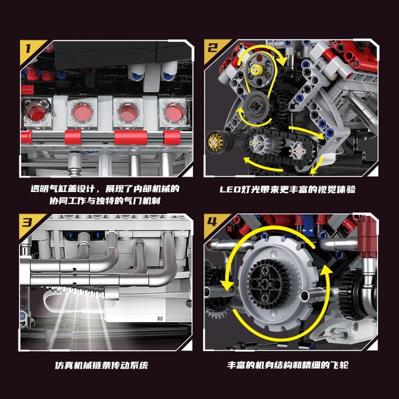 【Reducing Workings of the Real Engine】This building kit Modeled After the iconic F40LM Le Mans Race Car - V8 Engine.The transparent cylinder head design allows you to observe the engine’s operation and piston movement firsthand, this visible engine Building Blocks kit offers an immersive experience in mechanical engineering
