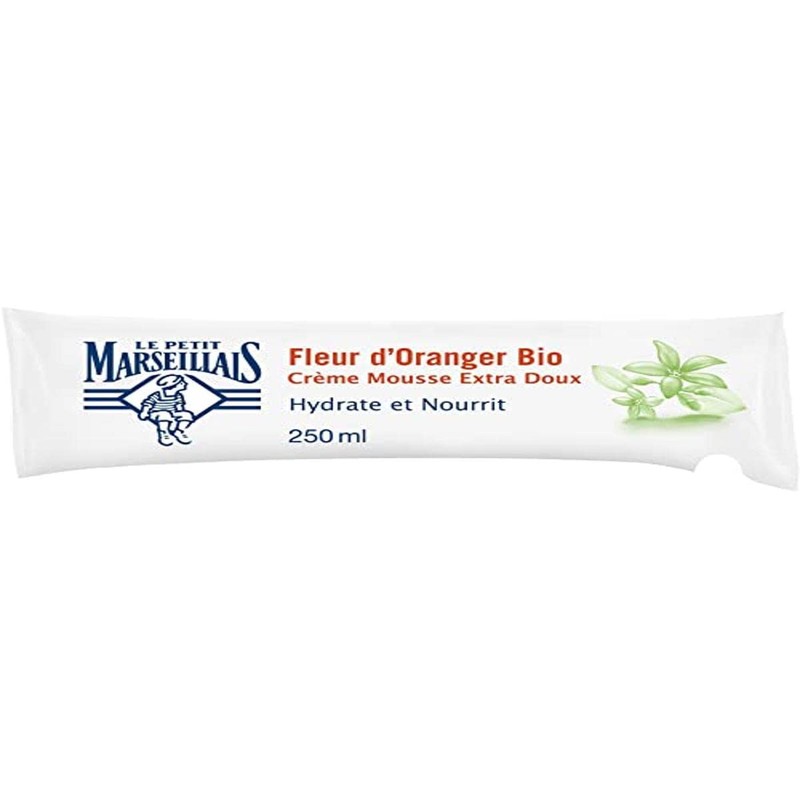 - The moss cream with orange blossom of Petit Marseillais gently cleanses your skin, Greek with its light foam, which releases a particularly fine fragrance