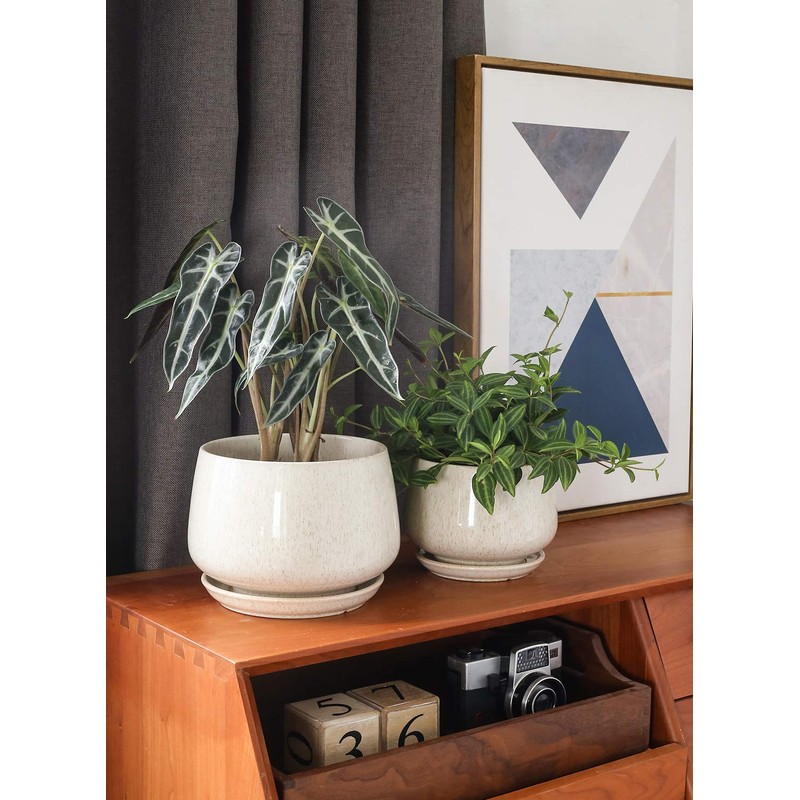 - 【Elegant Wax Modern Design】 Classic ceramic planters for indoor plants with good becoming tray, easy and elegant wax modern design with different color endings. Taking on a curved silhouette, it will make for a stylish and timeless accent piece to your indoor or outdoor space.