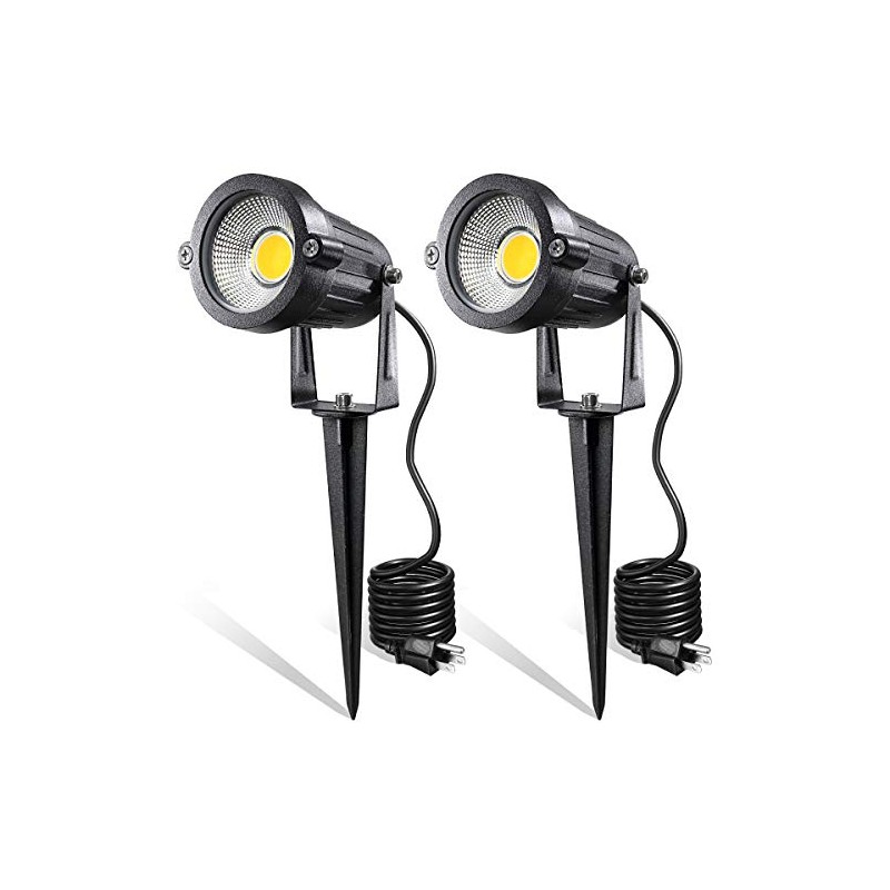 LEACOCO LED Landscape Lights,5W 120V AC Outdoor Pathway Garden Yard Spotlight,IP65 Waterproof Garden Flood Light,Outdoor Spotlight with Stake,UL Cord 5-ft with Plug (Pack of 2, Warm White)