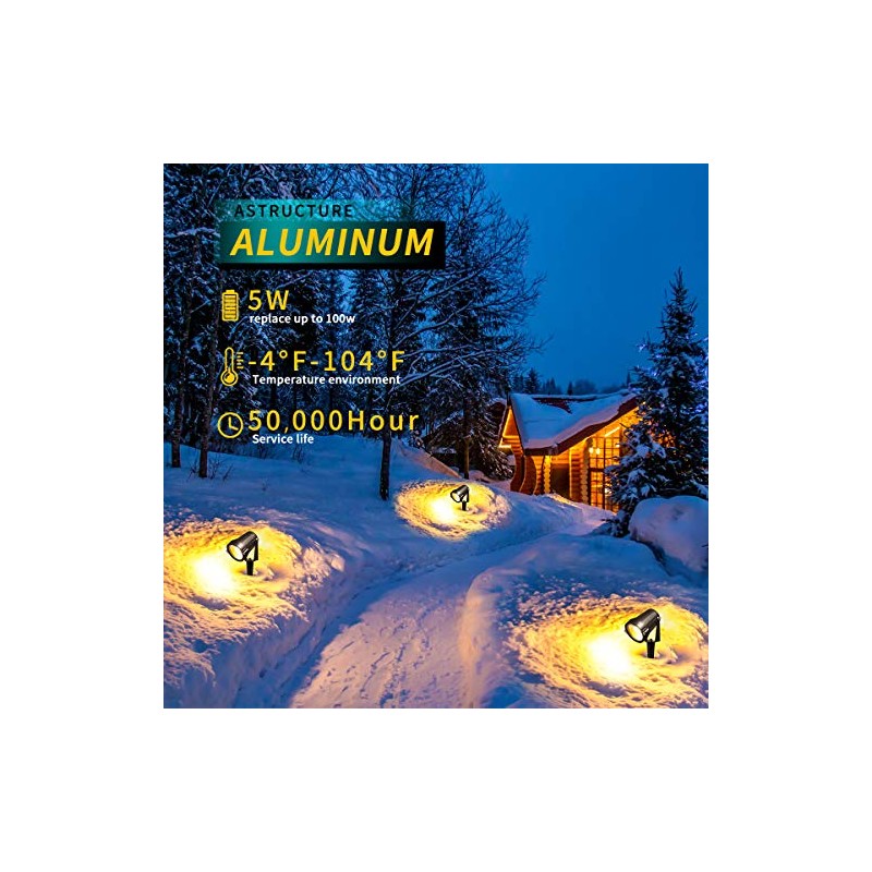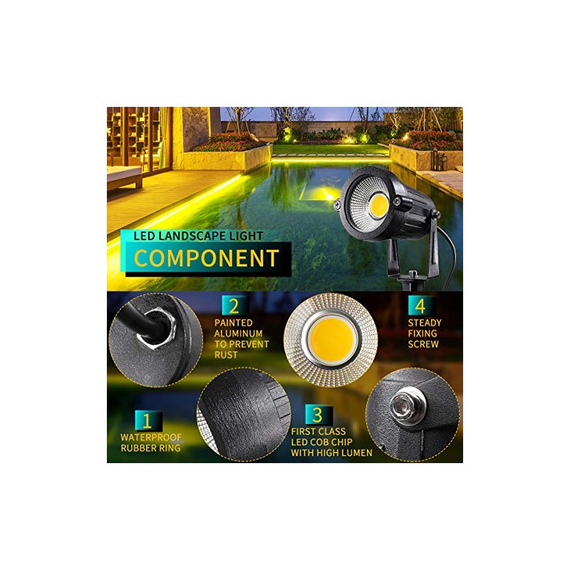 - 【IP65 Waterproof Rating】: The spotlight adopts enhanced LED COB chip. It is more stable and brighter than other LED landscape flood lights. Durable shell and glass lens cover structure, the protection level reaches IP65 waterproof level, which is very suitable for outdoor beautification environment used in different weather conditions, and greatly improves the stability of outdoor lighting and long-term use.