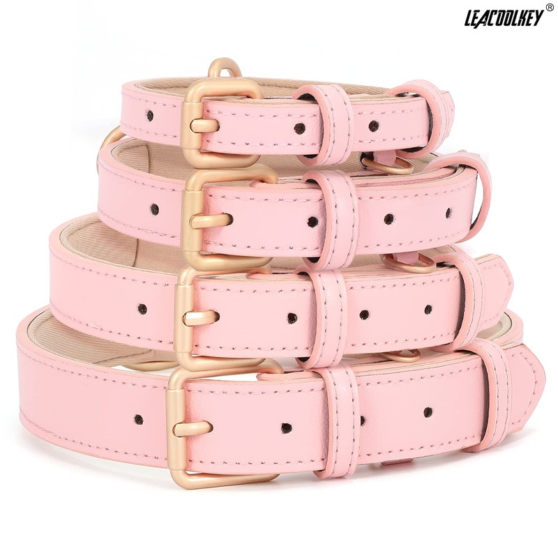 - Size of the dog collar: LEACOOLKEY leather-padded puppy collar is available in 4 sizes and is suitable for dogs of all sizes. Please measure the dog's neck before purchasing. The size of the dog collar can be adjusted, choose the right size for your dog to ensure comfort and safety. A 2-finger breathing space between the product and neck is recommended.