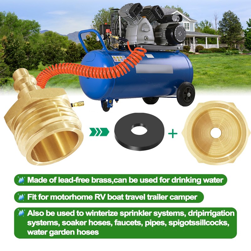 - Blowout plug adapter fitting is made from heavy-duty lead-free brass casting, sturdy, corrosion-resistant, and built to last. Its one-piece design prevents leaks, making it a reliable and essential tool for RVs, boats, sprinkler systems, and more