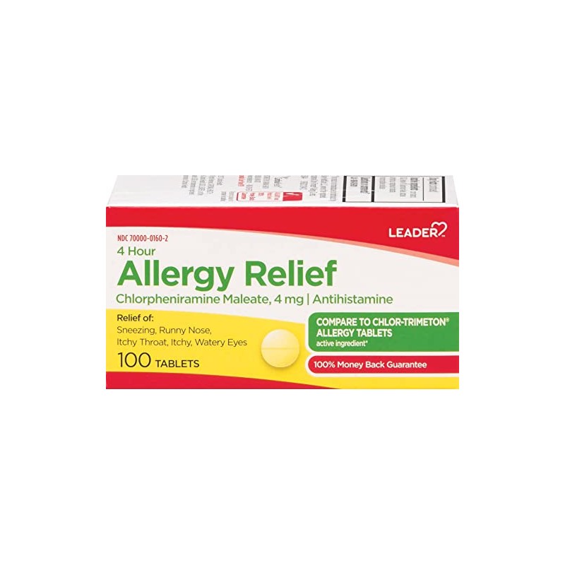 Leader 4 Hour Allergy Relief, Chlorpheniramine Maleate Tablets, Antihistamine...