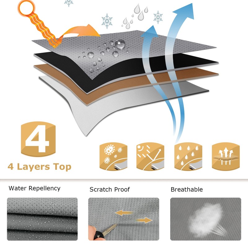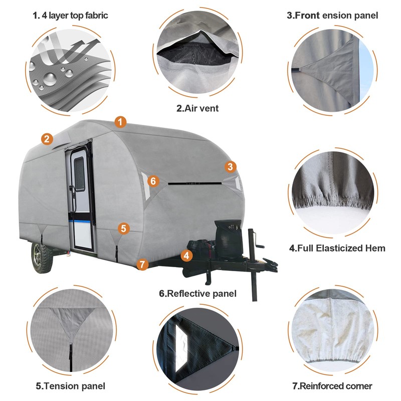 1. Thick, 4 layer durable fabric top with anti-UV to protect your RV from rain, dust, snow and scratches.