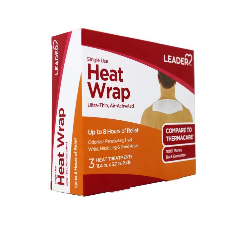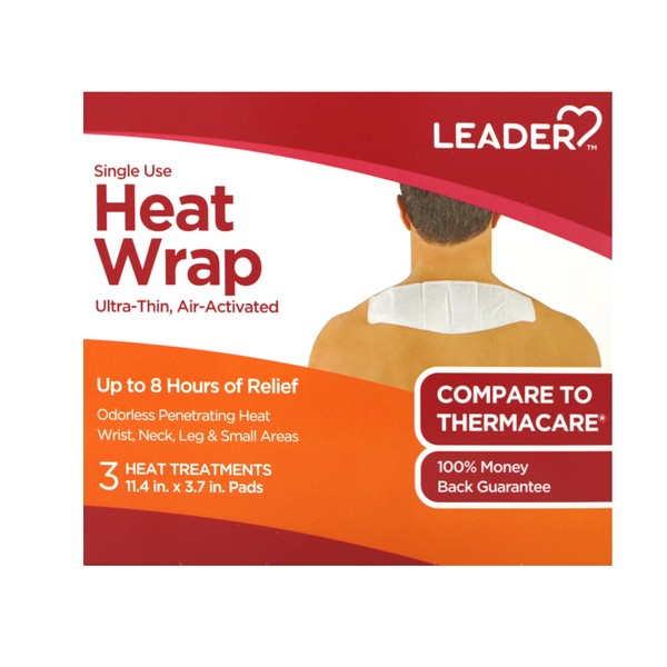 Leader Heat Wrap, Odorless Penetrating Heat Wrist, Neck, Leg & Small Areas, Up to 8 Hours of Relief, 3 Count per Pack