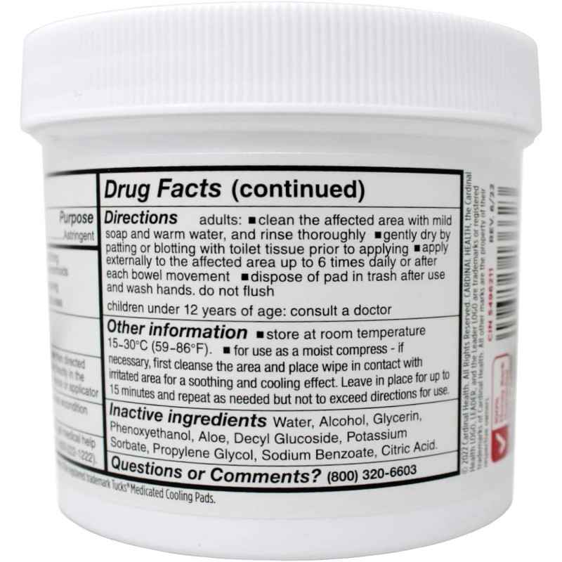 - Leader Medicated Hemorrhoidal Pads 100 count Contains Witch Hazel, 50%; soothes and protects irritated areas Provides immediate relief from itching and burning caused by hemorrhoids Compare to Tucks Medicated Cooling Pads