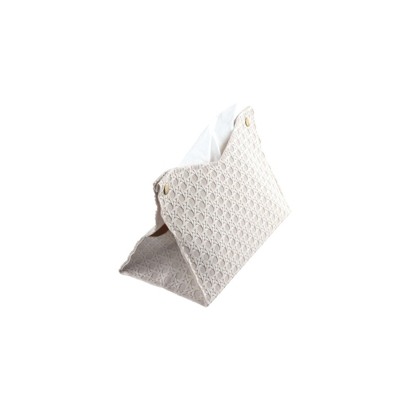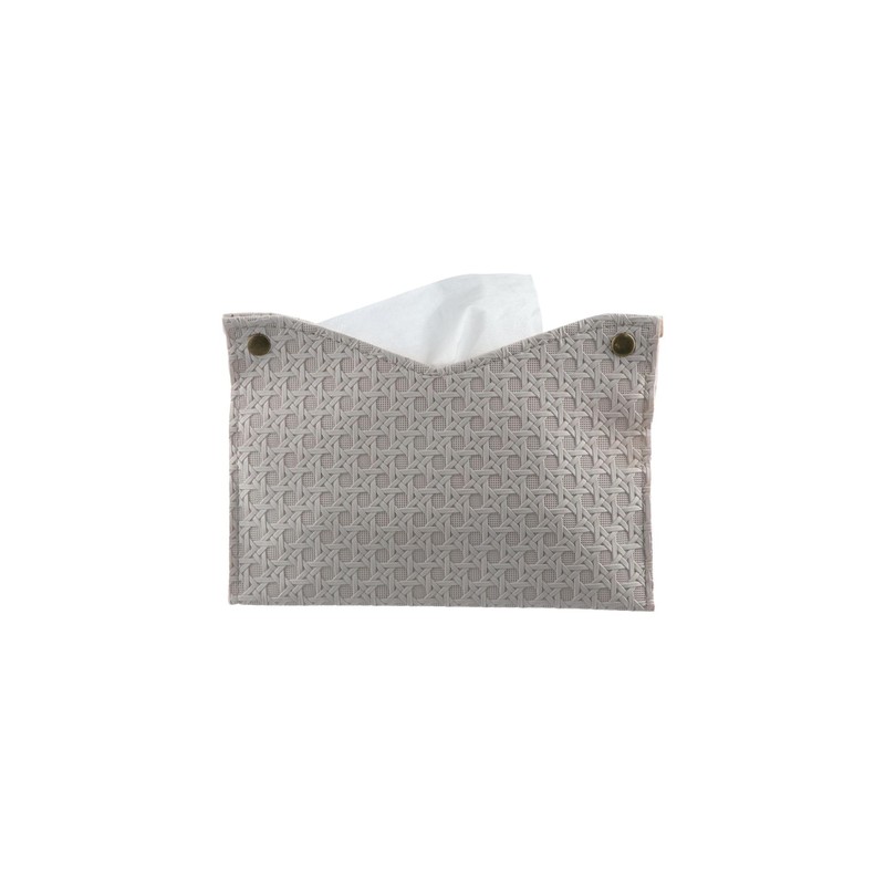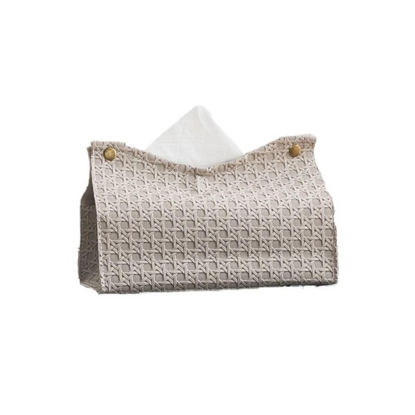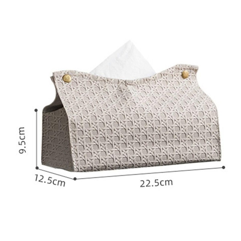 - This tissue holder has a new premium leather exterior with simple rattan weave. The meticulous craftsmanship gives it a superior feel, as well as a superior, elegant and durable quality.