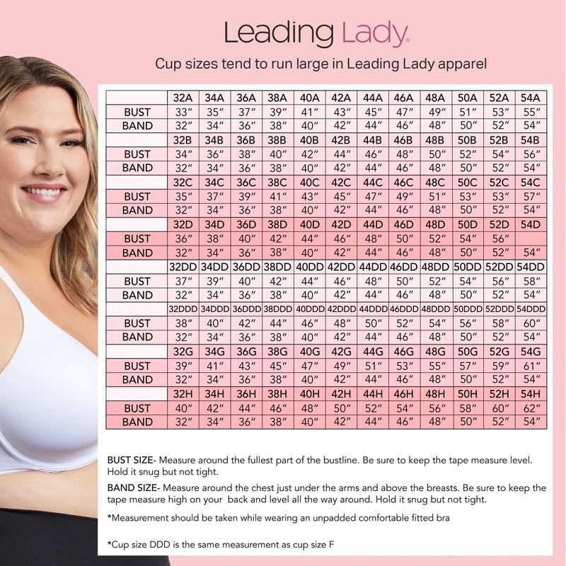- SOLUTION-BASED BRAS: For 85+ years, Leading Lady has designed bras to solve everyday challenges. From posture support to lift and comfort, our extended size range—including A cups and large band/small cup—ensures every woman finds her perfect fit.